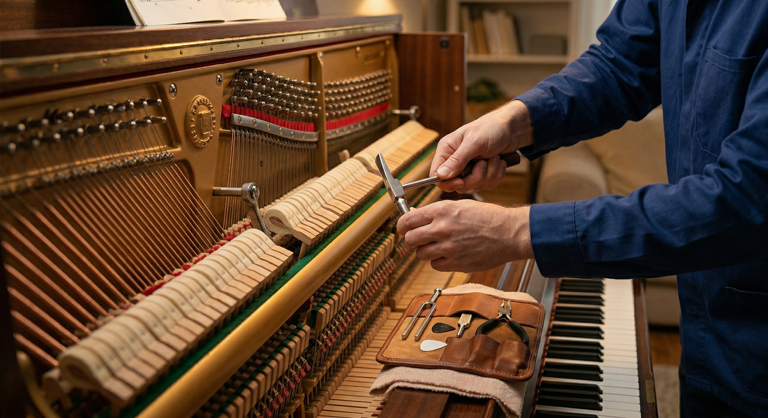 Sticky keys, loose dampers, or obvious buzzes can often be handled in the same visit, or referred when a specialist is the right call.