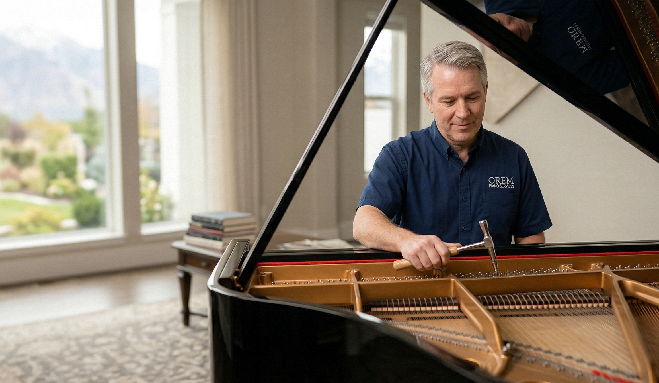Orem Piano Studio is a portfolio layout for a solo technician or small shop: homeowners, teachers, and performers who want a stable tuning without drama.
